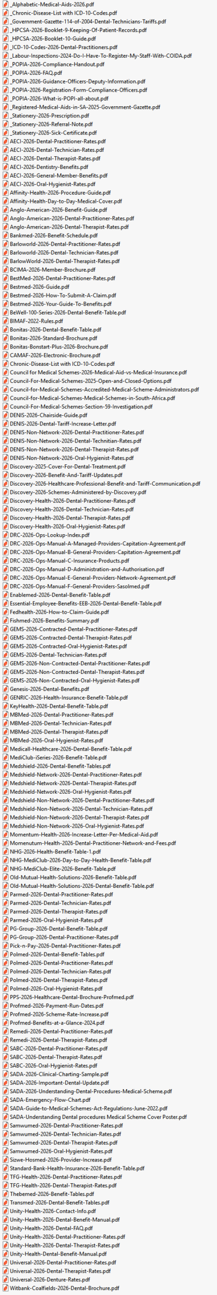 Once you double-click on the 2026-DTB icon on your desktop, the compressed .zip file will be opened and the contents sorted in order of medical aid scheme name.